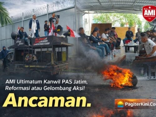 HeadlineSurabaya, PagiterKini.Com – Aliansi Madura Indonesia (AMI) menggelar aksi demonstrasi di depan Kantor Wilayah Direktorat Jenderal Pemasyarakatan (Ditjen PAS) Jawa Timur. Puluhan massa turun ke jalan sebagai bentuk kecaman terbuka terhadap dugaan kelalaian sistemik serta lemahnya pengawasan petugas di Lembaga Pemasyarakatan (Lapas) di seluruh wilayah Jawa Timur. Selasa (10/02/2026). Dalam orasinya, Ketua Umum AMI Baihaki […]