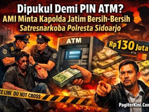 HeadlineSidoarjo, PagiterKini.Com – Dugaan pelanggaran berat di lingkungan Satresnarkoba Polresta Sidoarjo semakin melebar. Tidak hanya oknum Penyidik II yang disorot, tetapi juga Kanit dan Kasat dinilai harus ikut bertanggung jawab atas dugaan pengambilan uang Rp130 juta dari rekening tersangka melalui ATM. Berdasarkan keterangan keluarga, tersangka diduga dipukul untuk memaksa menunjukkan PIN ATM, hingga akhirnya uang […]