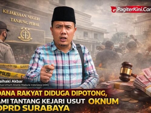 HeadlineSURABAYA, PagiterKini.Com – Dugaan praktik pemotongan dana reses yang bersumber dari APBD menyeret dua oknum anggota Dewan Perwakilan Rakyat Daerah Kota Surabaya ke meja hukum. Laporan resmi telah dilayangkan ke Kejaksaan Negeri Tanjung Perak atas indikasi pengembatan anggaran reses yang semestinya digunakan untuk menyerap aspirasi masyarakat. Aliansi Aliansi Madura Indonesia (AMI) menegaskan, laporan tersebut bukan […]