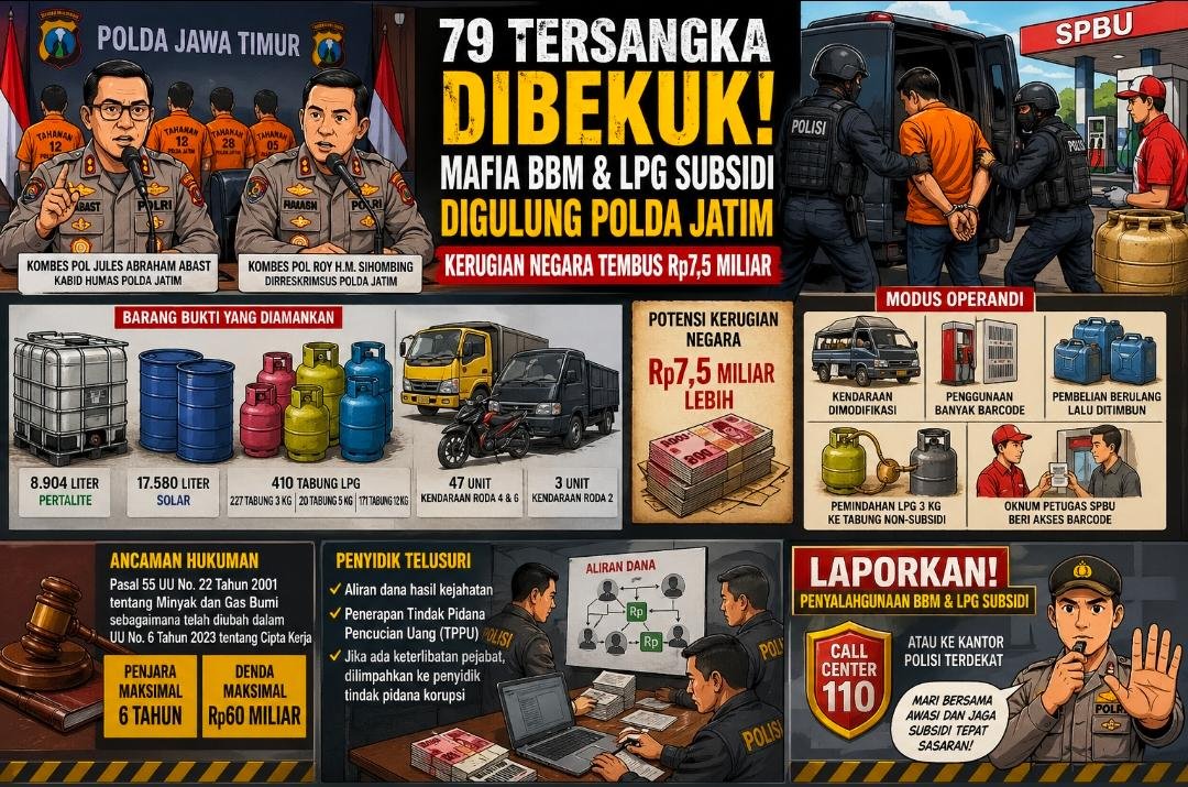 Kabid Humas Polda Jatim, Kombes Pol Jules Abraham Abast, menegaskan bahwa penindakan ini merupakan bentuk komitmen tegas Polri dalam mengawal distribusi energi bersubsidi agar tidak diselewengkan.