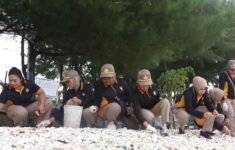 Polri Peduli Lingkungan : Polres Pelabuhan Tanjungperak Bersihkan Pesisir Surabaya Sambut Hari Bhayangkara ke-79