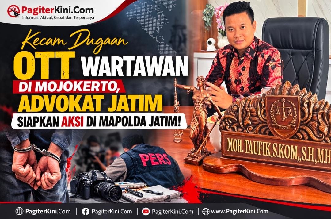 PASURUAN, PagiterKini.Com – Dugaan operasi tangkap tangan (OTT) terhadap seorang wartawan di Mojokerto menuai kecaman keras dari kalangan advokat. Advokat Jawa Timur, Bung Taufik, secara tegas menyebut peristiwa tersebut sarat kejanggalan dan berpotensi sebagai skenario yang mencederai kemerdekaan pers.