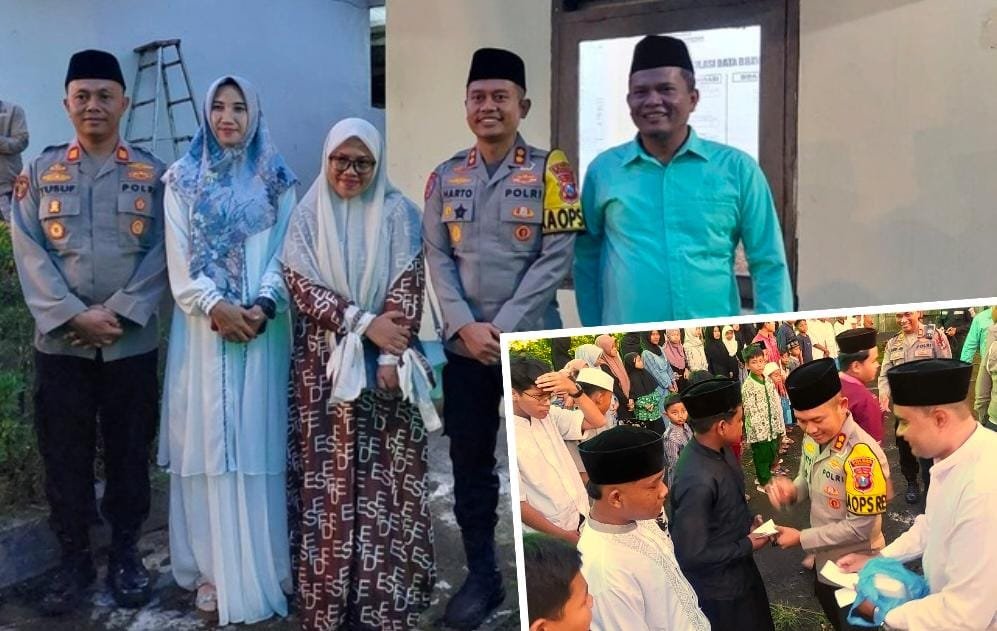 Kegiatan kemudian dilanjutkan dengan buka puasa bersama antara jajaran Polres Pasuruan, para tamu undangan, dan masyarakat yang hadir di halaman Mapolsek Purwodadi.