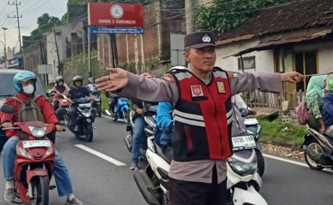 Pasuruan, PagiterKini.Com – Komitmen menjaga keselamatan pelajar dan pengguna jalan terus ditunjukkan jajaran Polsek Sukorejo dengan menerjunkan personel setiap pagi di jalur nasional Surabaya–Malang, khususnya ruas Sukorejo–Purwosari.