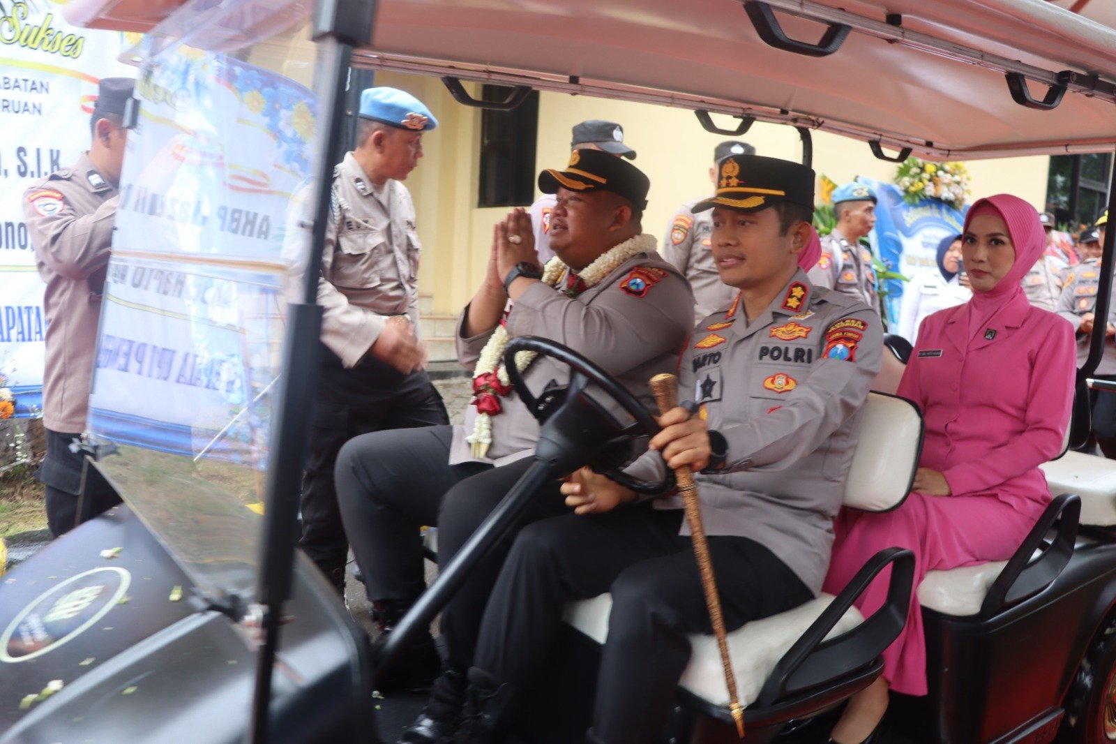Prosesi penyambutan pejabat baru diawali dengan pengalungan bunga oleh Wakapolres Pasuruan Kompol Andy Purnomo, dilanjutkan laporan penghormatan pasukan, tarian selamat datang, serta iringan hadrah Al Wally. Setelah sesi foto bersama dan ramah tamah, kegiatan dilanjutkan dengan Laporan Kesatuan (Lapsat), penandatanganan memori serah terima jabatan, hingga apel kesatuan dan tradisi pelepasan pejabat lama.